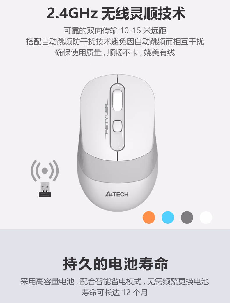 双飞燕(A4TECH) FG10 象牙白 防滑双色裙翼 无线鼠标 1.00 个/只 (计价单位:只) 象牙白