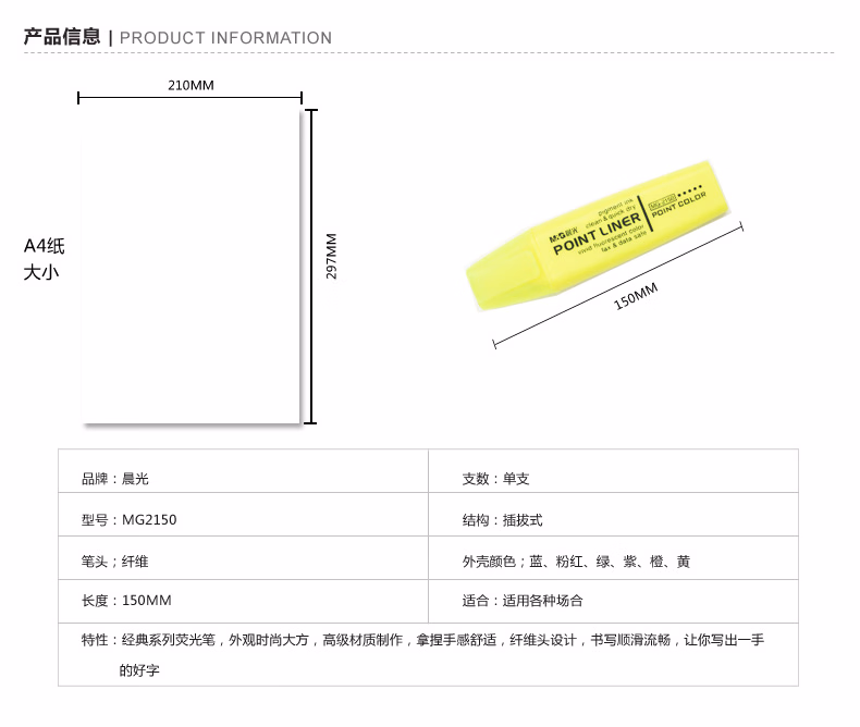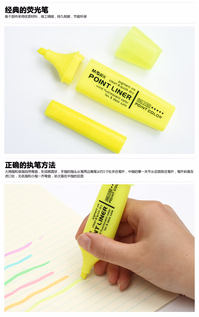 商品名称:晨光(M&G) 文具荧光笔彩色标记笔记号笔MG2150 MG2150黄色-3支