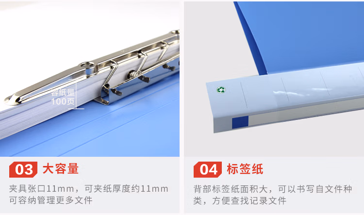 金得利(KINARY) AF603 单强力长押夹文件夹带插袋A4 蓝色