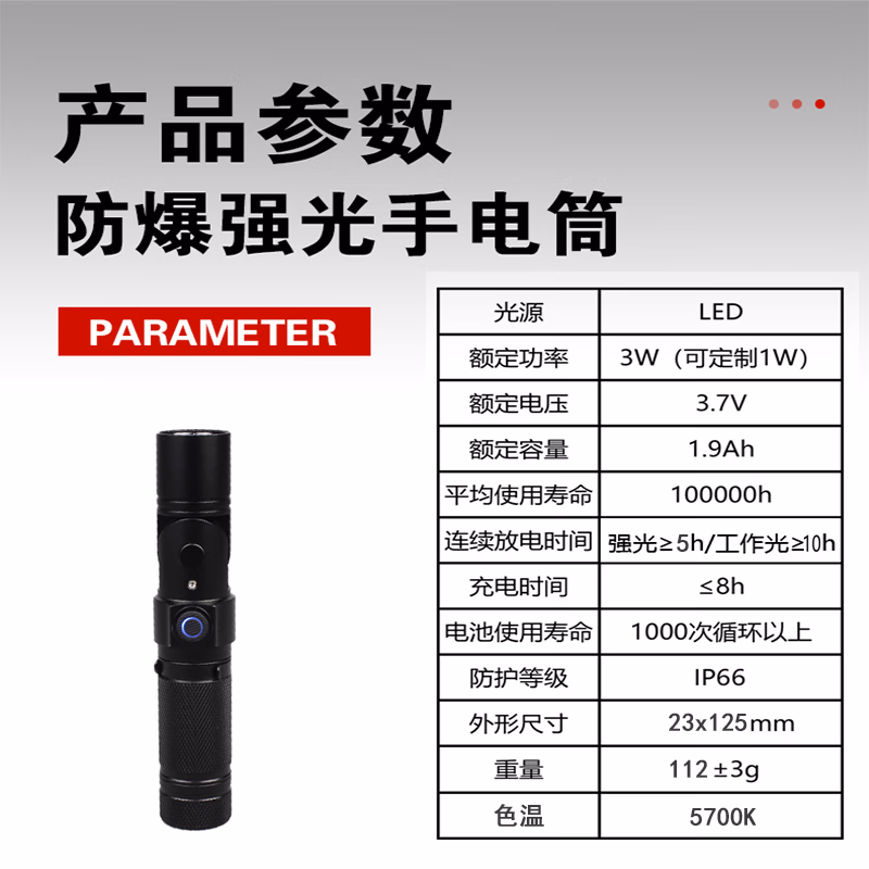 光源速 SW2103B 电压等级:3.7V、功率:3W、防护等级:IP66、色温:6000K微型防爆手电 1.00 个/台 (计价单位:台) 黑色 电筒 1.00 个/台 (计价单位:台) 黑色