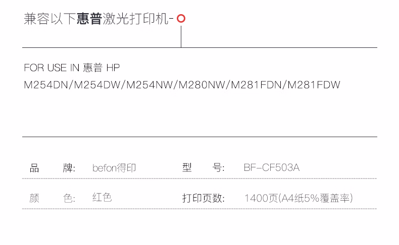 得印(befon) PLUS BF-CF503A 1400页 适用惠普HP M254dn 硒鼓 1.00 只/支 (计价单位:支) 红色
