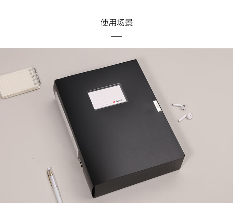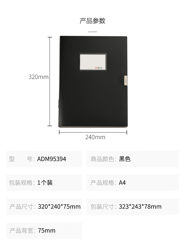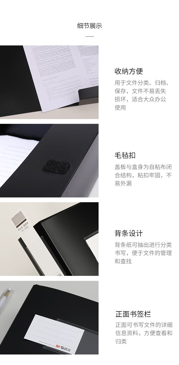 晨光(M&G)文具A4/75mm黑色粘扣档案盒 大容量PP文件盒 党建资料盒/财务凭证收纳盒 单个装ADM95394 单位:个 10个起订