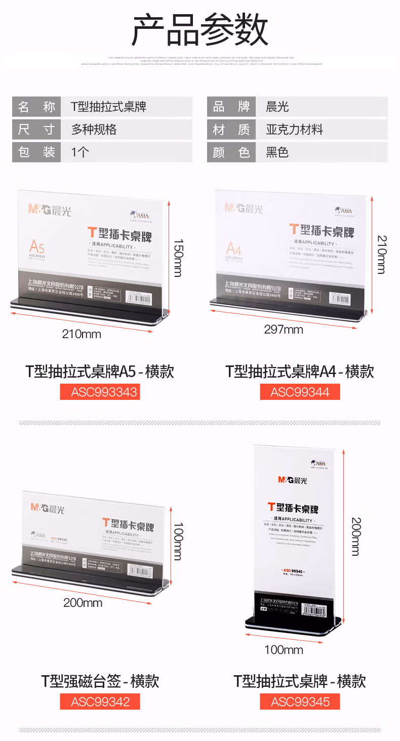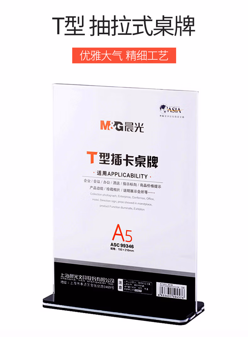 晨光 ASC99344 A4 T型 横式抽拉 展示铭牌 (计价单位:个) 透明