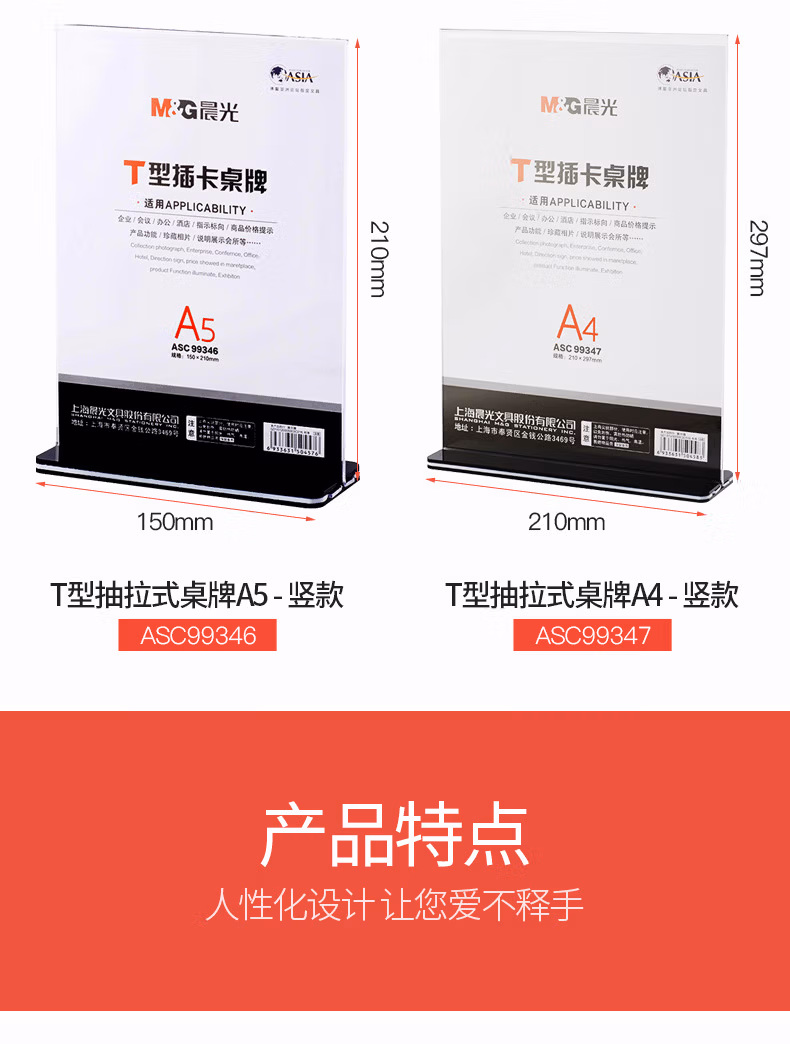 商品名称:晨光会议桌牌台卡亚克力台牌立式a4台签桌签牌座签牌席卡立牌架水牌展示牌 A4竖式抽拉式桌牌 A4横式抽拉式ASC99344