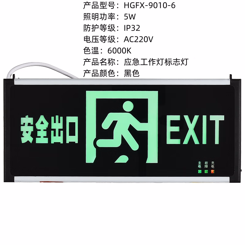 虎光风行 HGFX-9010-6 照明功率5W 防护等级IP32 电压等级AC220V 光源颜色/色温6000K 光源类型LED 应急工作灯标志灯 (计价单位:盏) 黑色