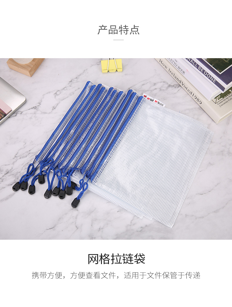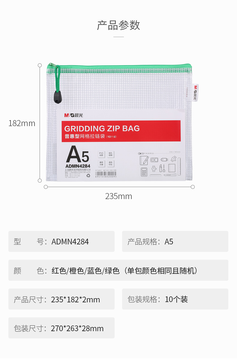 晨光(M&G)文具A5/10个装网格拉链袋 办公文件袋资料袋 考试试卷收纳文件整理收纳袋 颜色随机ADMN4284 单位:组
