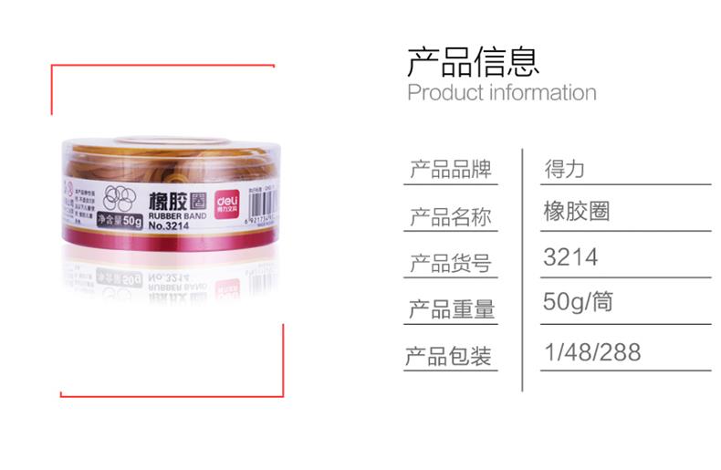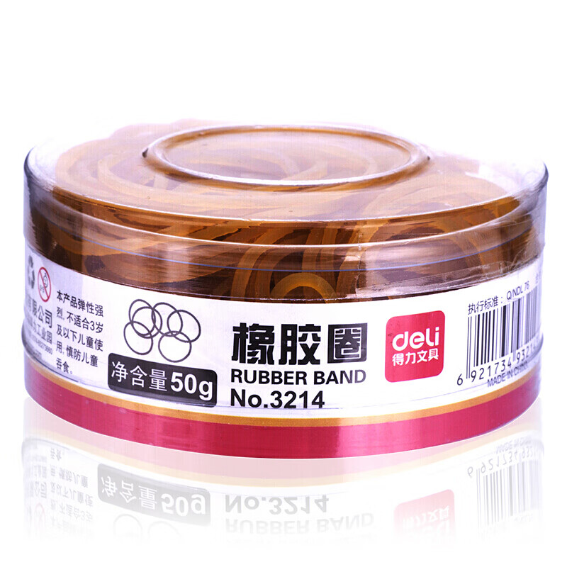 得力(deli)橡皮筋乳胶圈橡皮筋橡胶圈牛皮筋 3214(黄)(50g/筒) 单位:筒